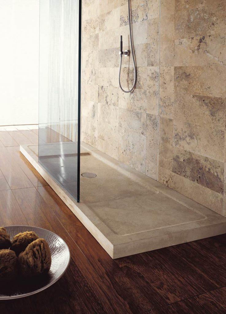 Le travertin est une pierre naturelle calcaire reconnue pour sa solidité et sa longévité. Elle est particulièrement adaptée aux bacs à douche en pierre naturelle et aux sols de douche en travertin.